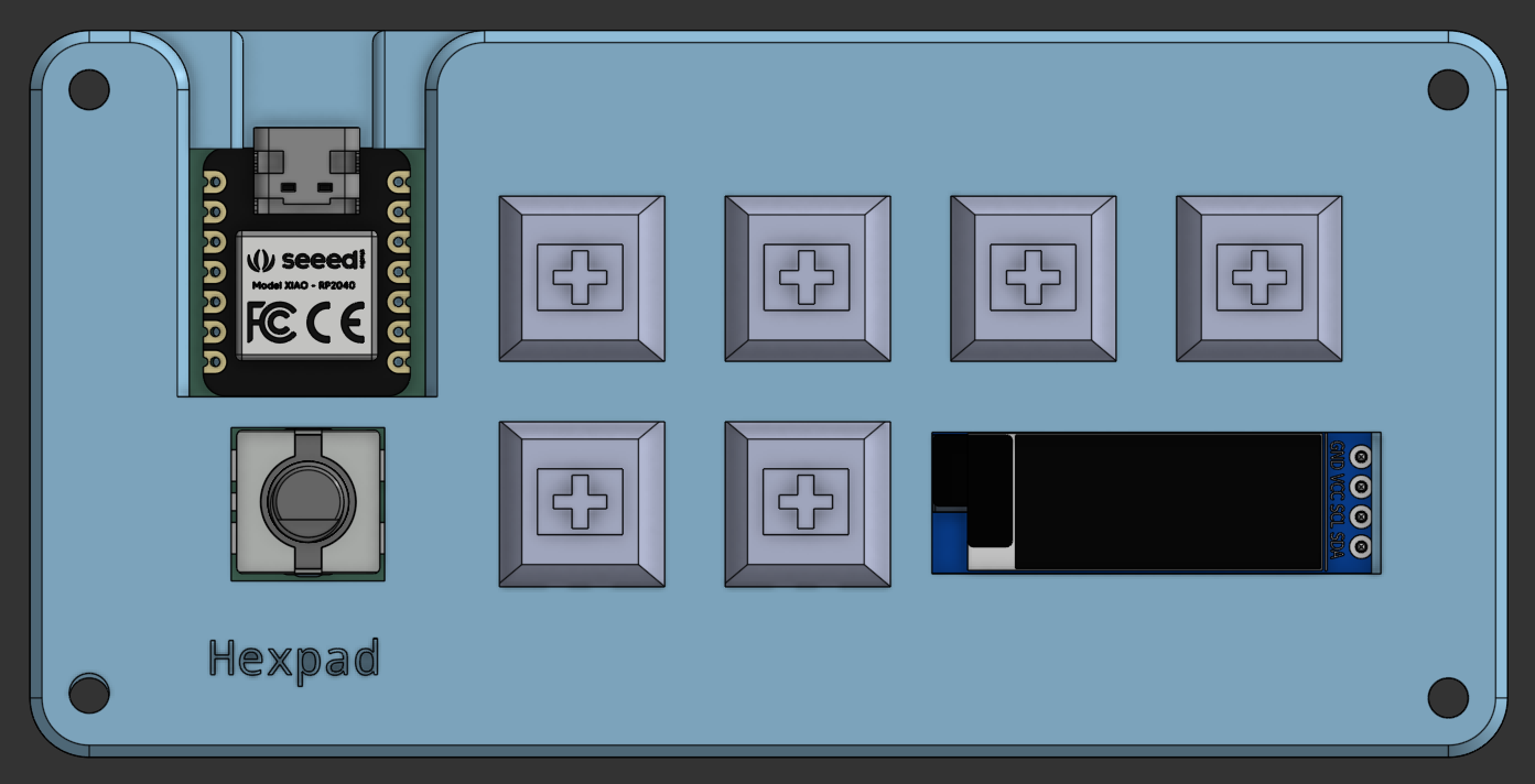 In this project I was taking part in the Highway (Hack Club) event where I built a custom macropad 6-key macropad. I used KiCad for the custom PCB and Python to write the KMK firmware. The macropad includes 6 Cherry MX switches, 6 neopixels, 1 rotary encoder for a volume knob and 1 OLED display all encased in a 3D printed case designed in Onshape