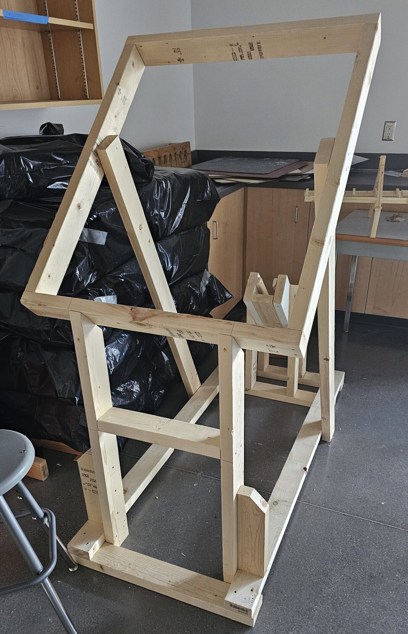 In this project, we built a slingshot from 2×4 lumber and slingshot tubing, then challenged members to design a casing that could protect a raw egg when launched.